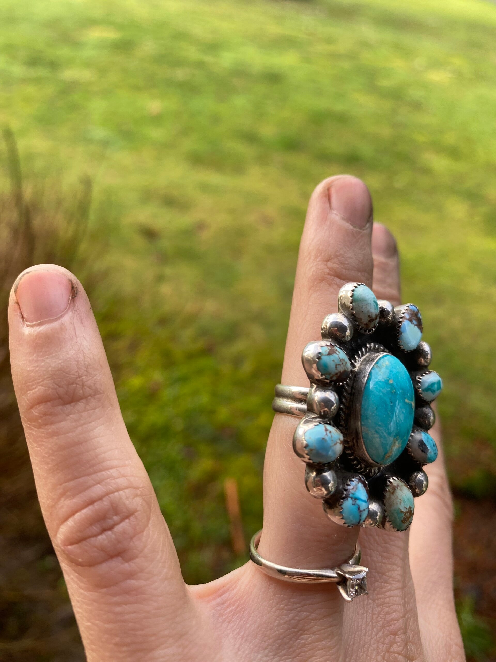 Golden Hills Turquoise and Blue Ridge Turquoise Cluster ring size 6.5