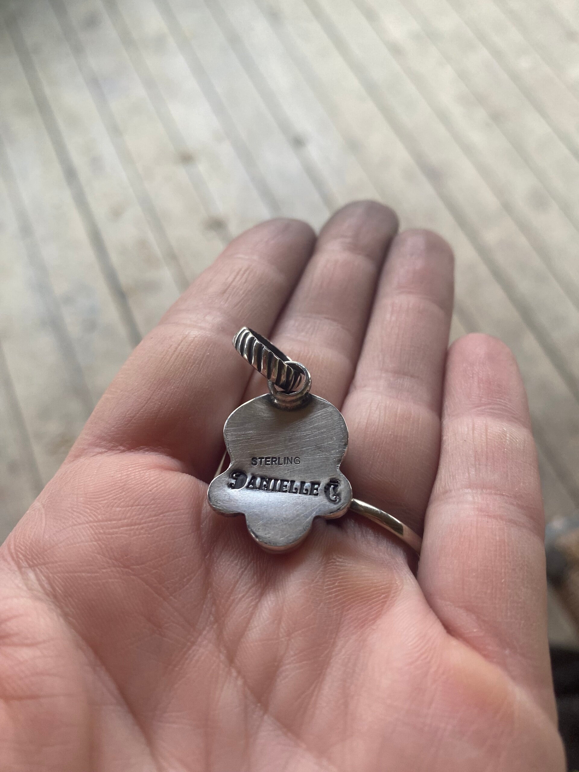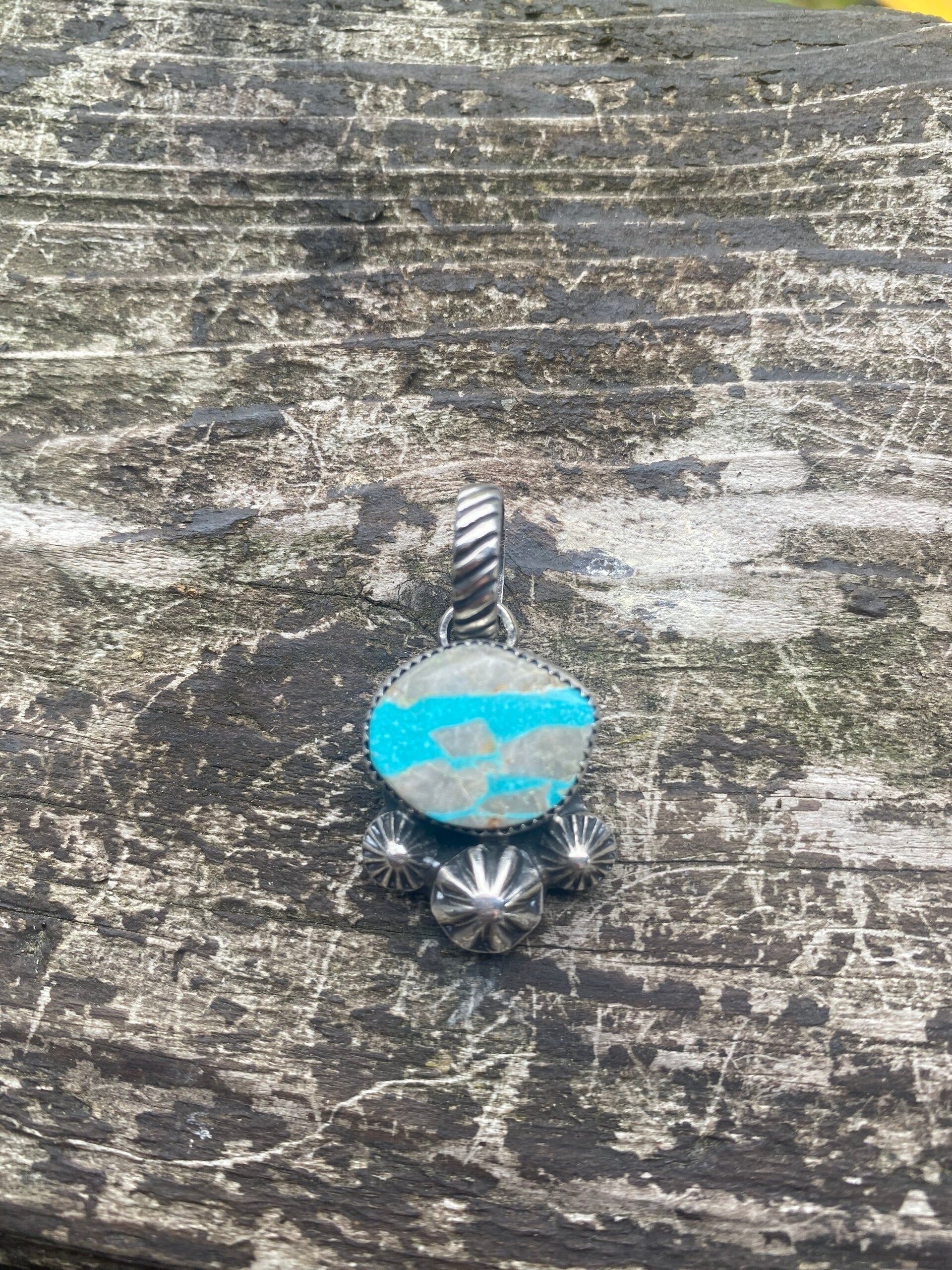 All sterling silver Royston Turquoise pendant. Bright blue Turquoise Ribbon. Handmade by me and signed with my makers mark.