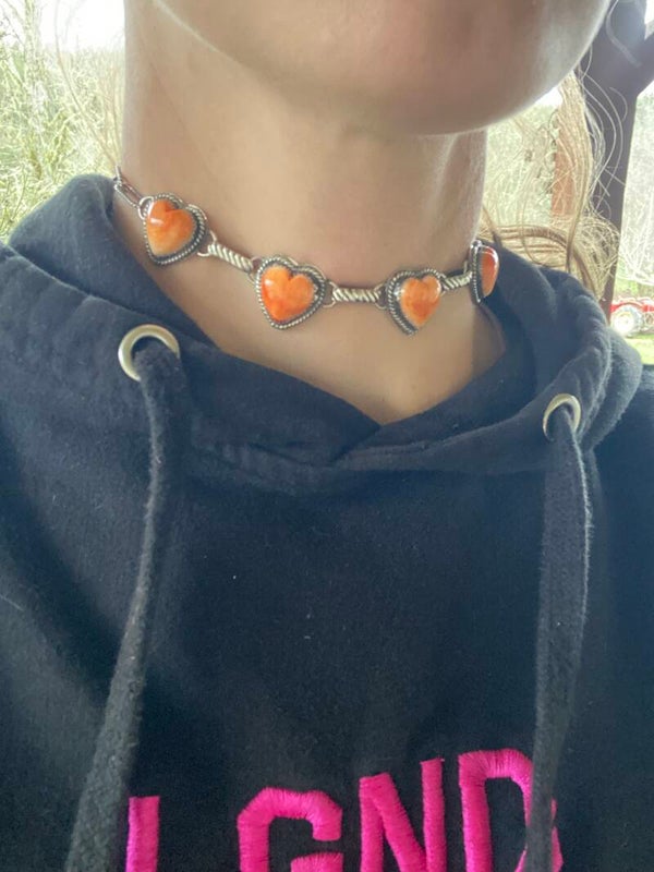 Orange Spiney Oyster Heart Necklace