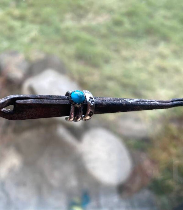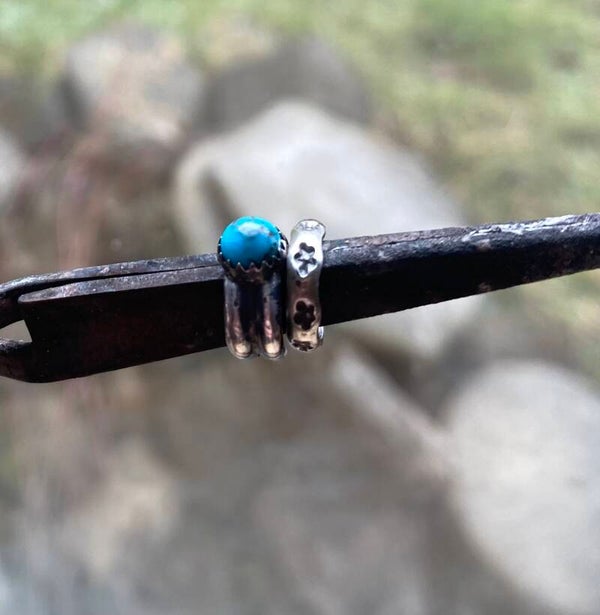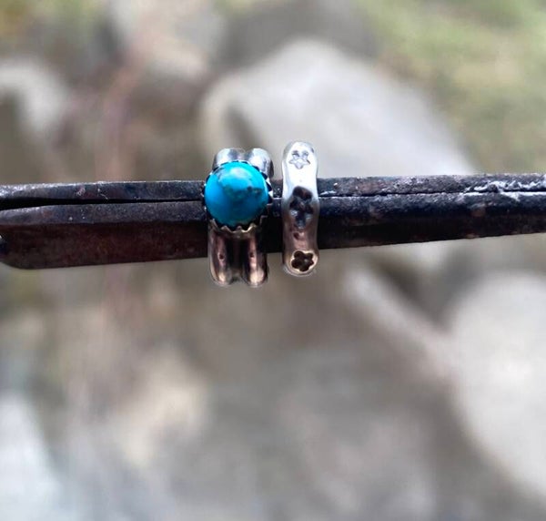 All sterling silver handmade by me. Genuine Kingman Turquoise. You will receive two separate ear cuffs as a set. The Turquoise cuff and the star cuff.
