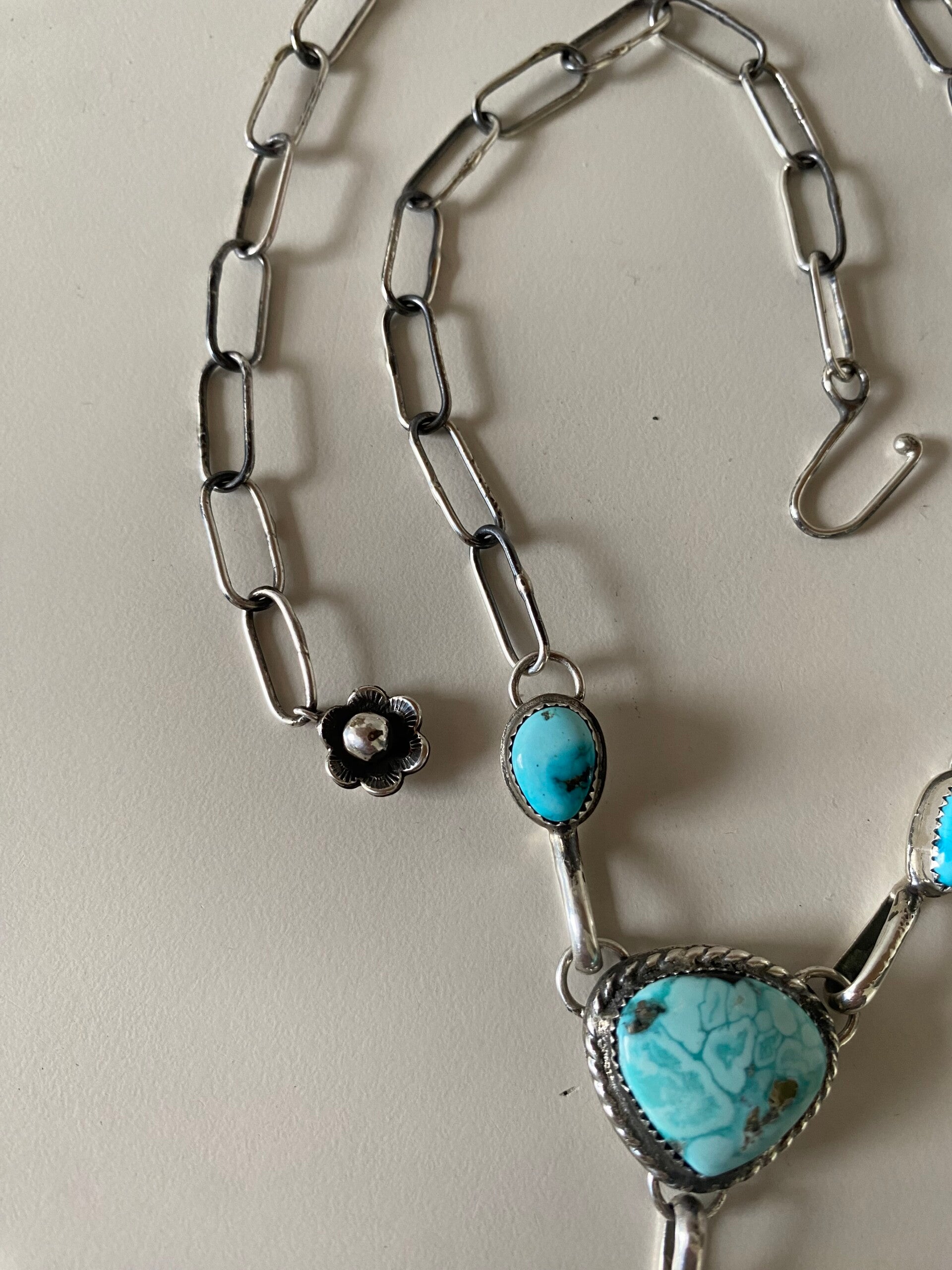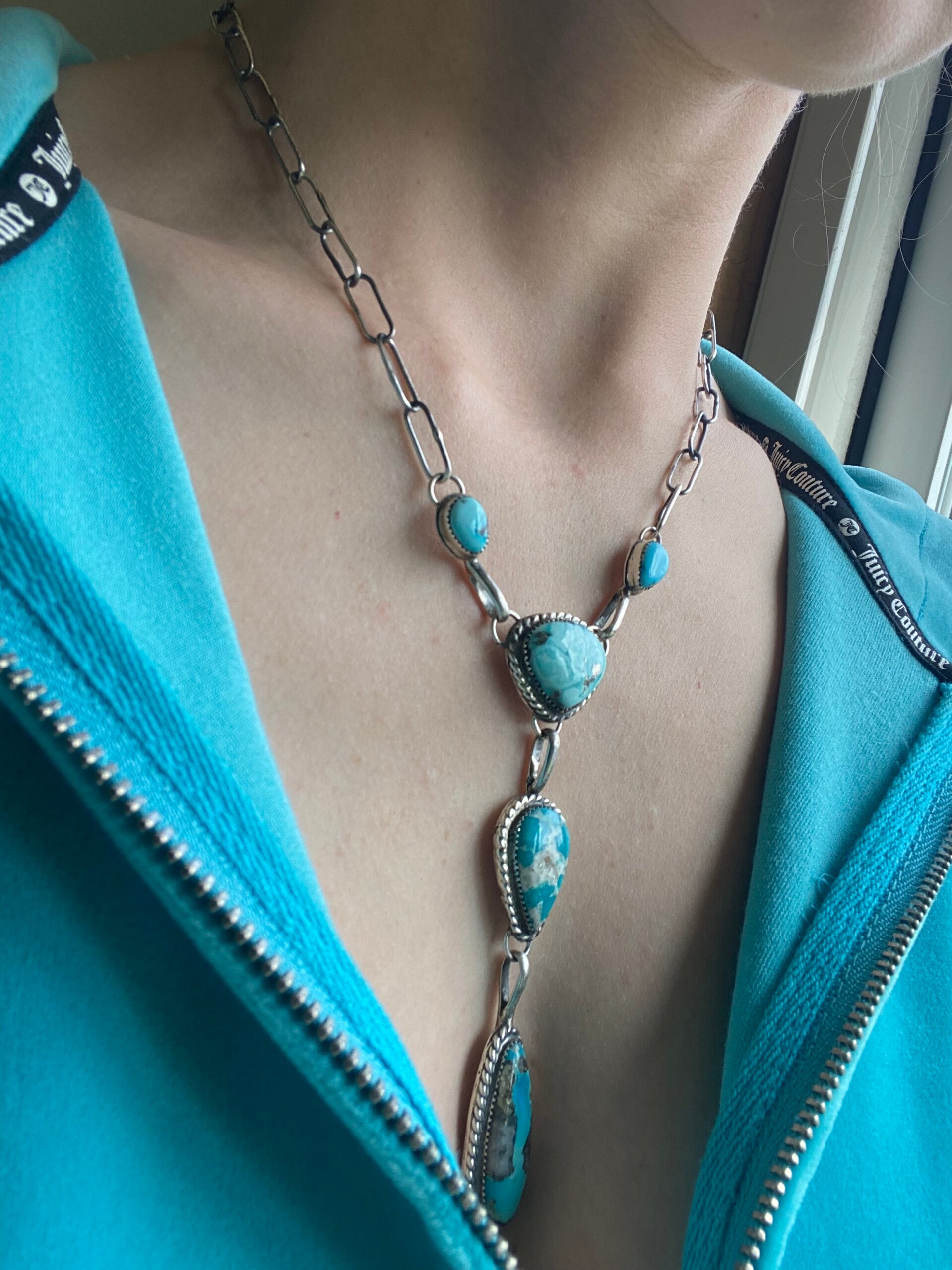 Genuine Turquoise and sterling silver lariat drop necklace